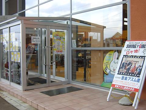 | 中は撮影禁止なので、ここまで。見たい方は直接どうぞ。2004年12月で終わってしまいますが、生写真がいっぱいで楽しめます。 | 唯一写真撮影可能なもの。アズム館からの提供品なので撮影可能です。一番奥のトロンボーンは谷啓さんが使ったものだったか?。記憶が怪しい(苦笑)。 |