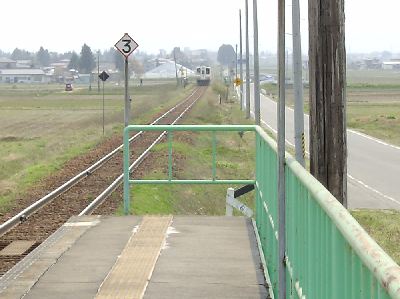 | 車を飛ばして到着!。ホームに着いたらすでに列車が見えていました。 |