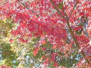 | 一部だけ切り取れば、なんとか紅葉になります。 | これも落柿舎の南辺りで。観光スポットを外れていて、人通りもまばら。 | |