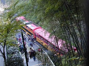 | ちょうどトロッコ列車が着いたところ。 | さらに竹林を抜けて、亀山公園へ。知らぬ間に大河内山荘は通り過ぎていました。 | |