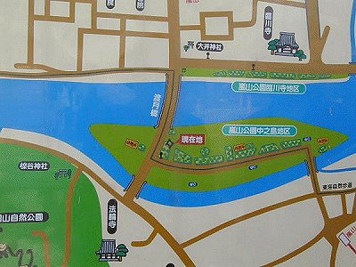 | 11月20日のオフの集合場所付近の地図。中ノ島の「現在地」の文字がある辺りに、時計台があって、そこのようです。右端が阪急嵐山駅。渡月橋を上に行くと、京福嵐山駅。 | ||